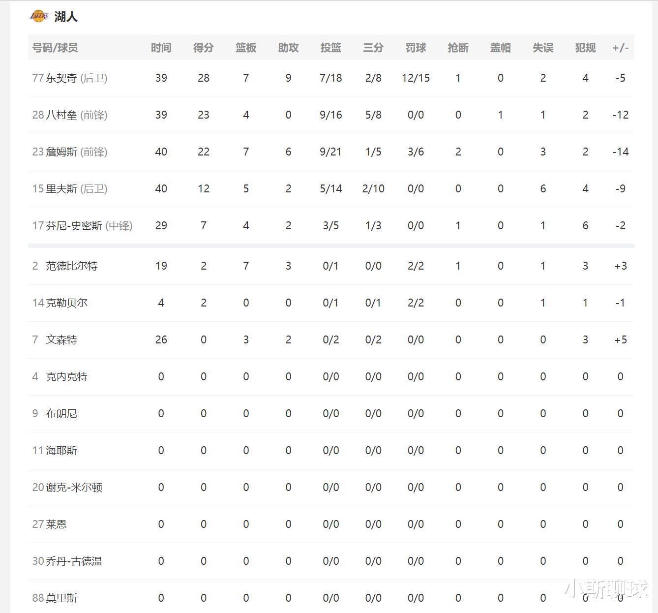 第三节东契奇、八村垒三分命中,八村垒成为湖人队第三得分点,将比分反超至79-77,戈贝尔补篮得手帮助球队稳住了局势。三节结束,森林狼81-80领先。