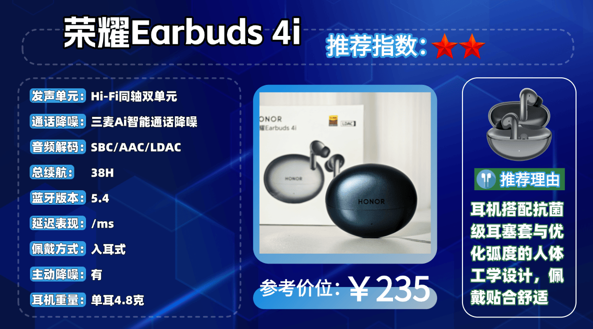 爆品机型2、荣 耀E arbuds 4i 蓝牙耳机