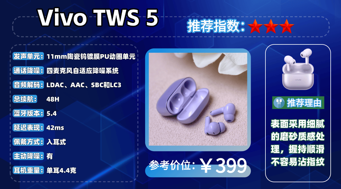 爆品机型5、V ivo T WS 5蓝牙耳机