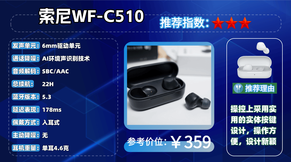 爆品机型7、索 尼WF-C510蓝牙耳机