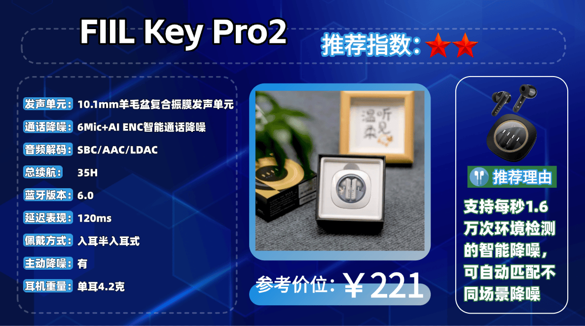 爆品机型10、F IIL K ey Pro2蓝牙耳机