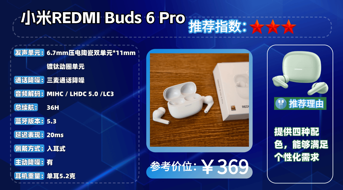 爆品机型9、小 米R EDMI Buds 6 Pro蓝牙耳机