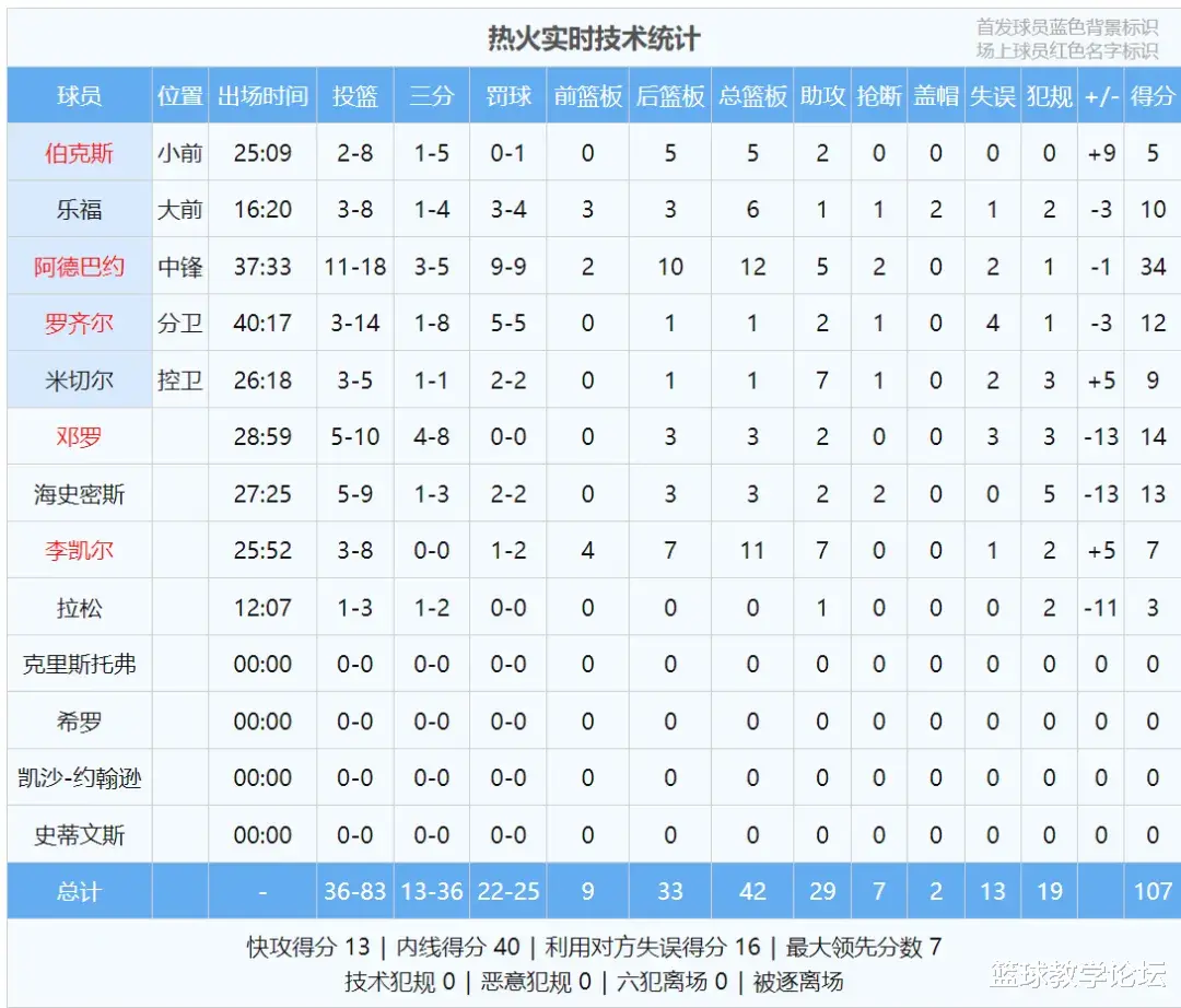 李凯尔8中3,拿到7分11板7助,正负值+5全队第二高。阿德巴约空砍34分12板5助2断,罗齐尔14中3拿到12分4失误。亨特正负值+18,全场最高,骑士7换1大交易值了!最后看看数据,说说心情: