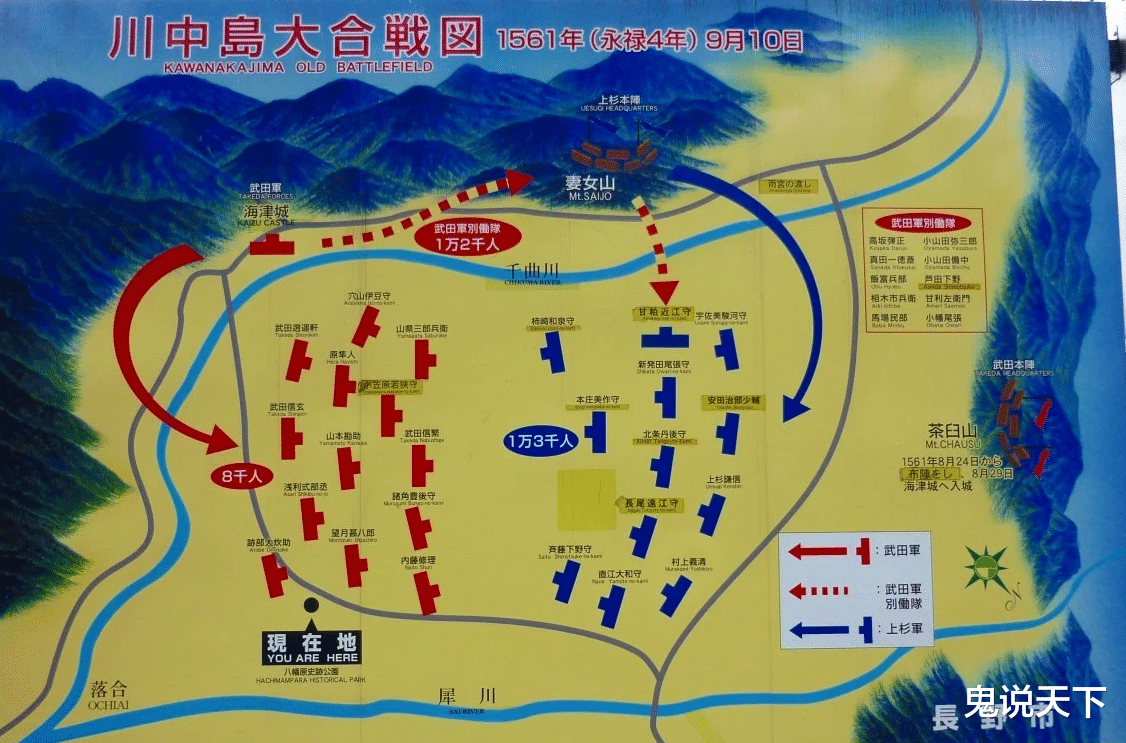 在武田信玄与上杉谦信的五次川中岛之战中,爆发于永禄四年(1561年)的第四次川中岛之战(又称“八幡原之战”)的规模最大、烈度最高。此战上杉军一万三千人,武田军两万人,双方一共阵亡大约七千人,是日本古代历史上阵亡比最高的一场战争。故而能被视为“日本三大合战”之一。
