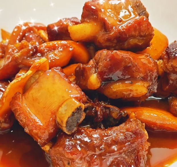 烹饪时,锅中倒入适量食用油,油温六成热时将腌好的排骨一块块夹入锅中,用中小火慢炸。待排骨表面金黄微焦即可捞出控油。锅中留少许底油,放入几片姜爆香,然后倒入炸好的排骨,再加入一勺料酒、一勺生抽、一勺白糖和之前备好的橙子片,最后加入没过排骨一半的热水。盖上锅盖,用中小火焖煮二十分钟。时间到后开大火收汁,待汤汁变得浓稠油亮时即可关火出锅。