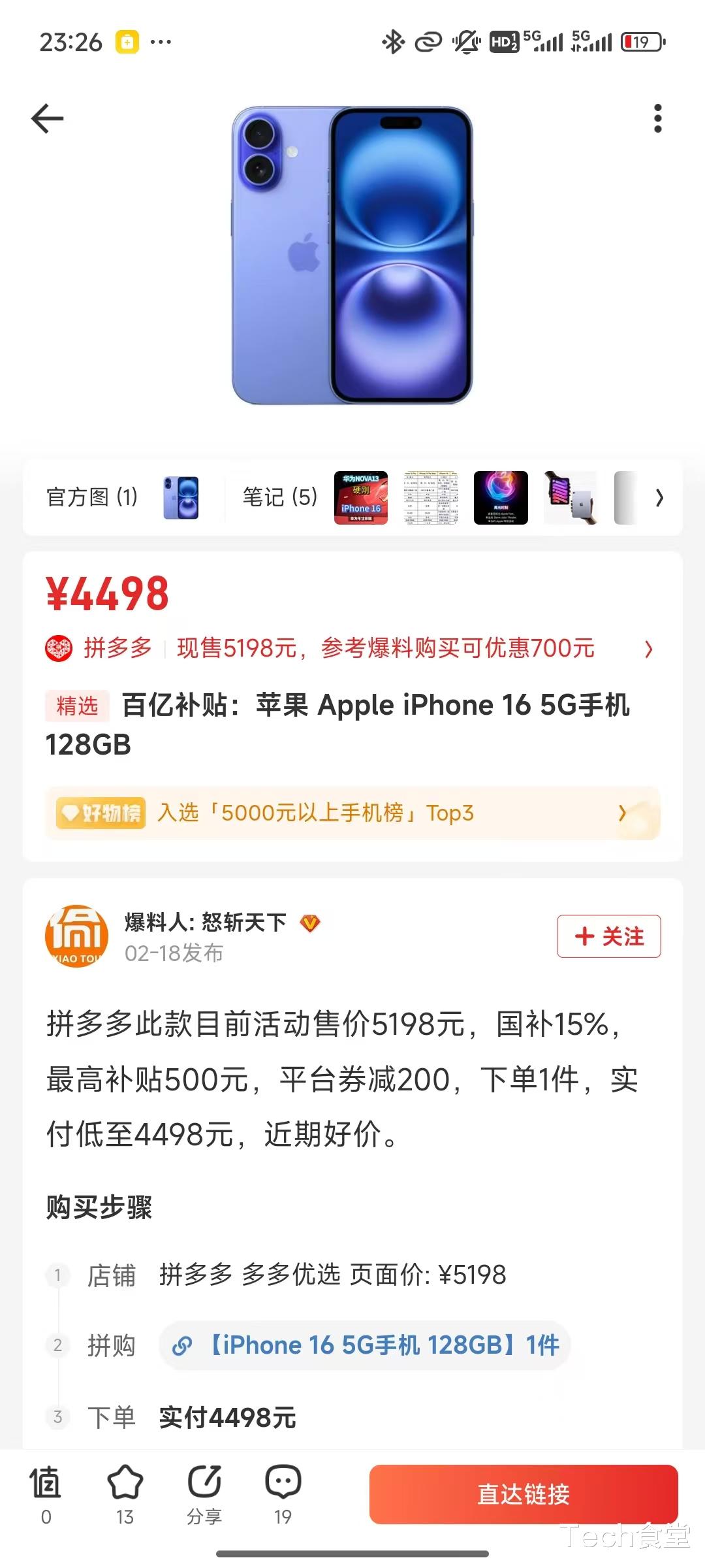 购买建议算上国补的价格,iPhone16E 的价格则为 3999。