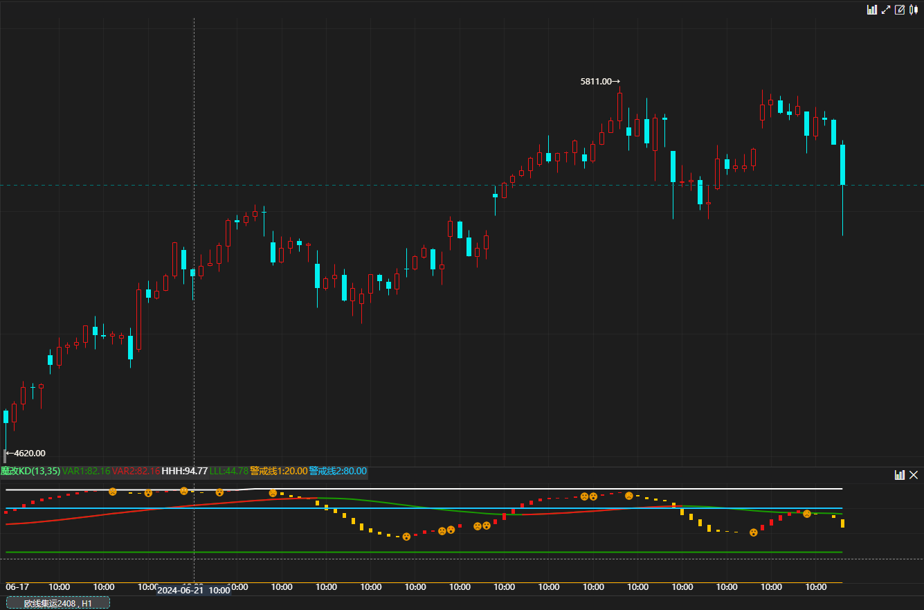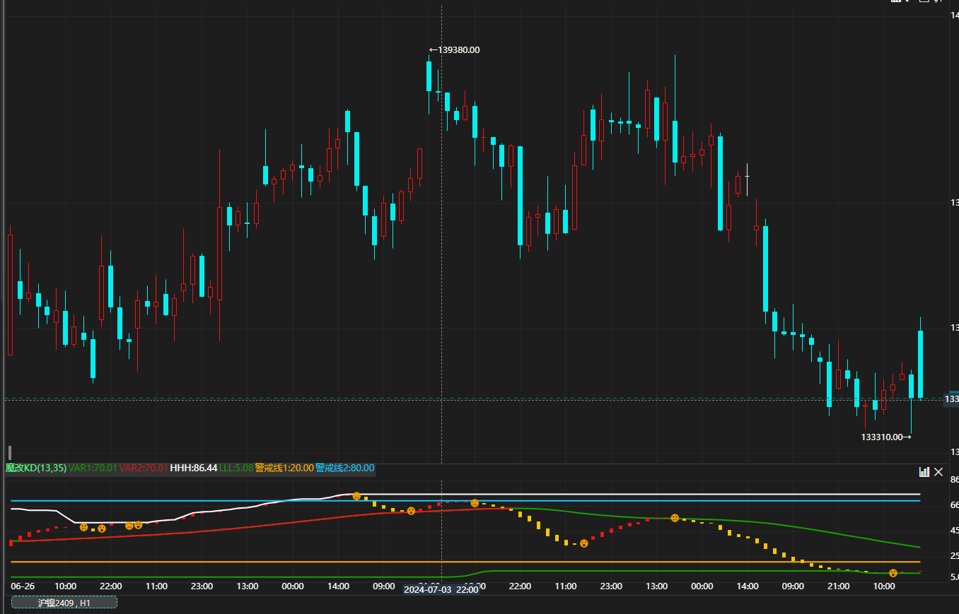因此,对指标进行“修改更新”成为了指标使用的必经之路。今天这款指标,结合了价格重心、价格高低点变化以及传统KD指标的设计思路,经过综合创新而成。
