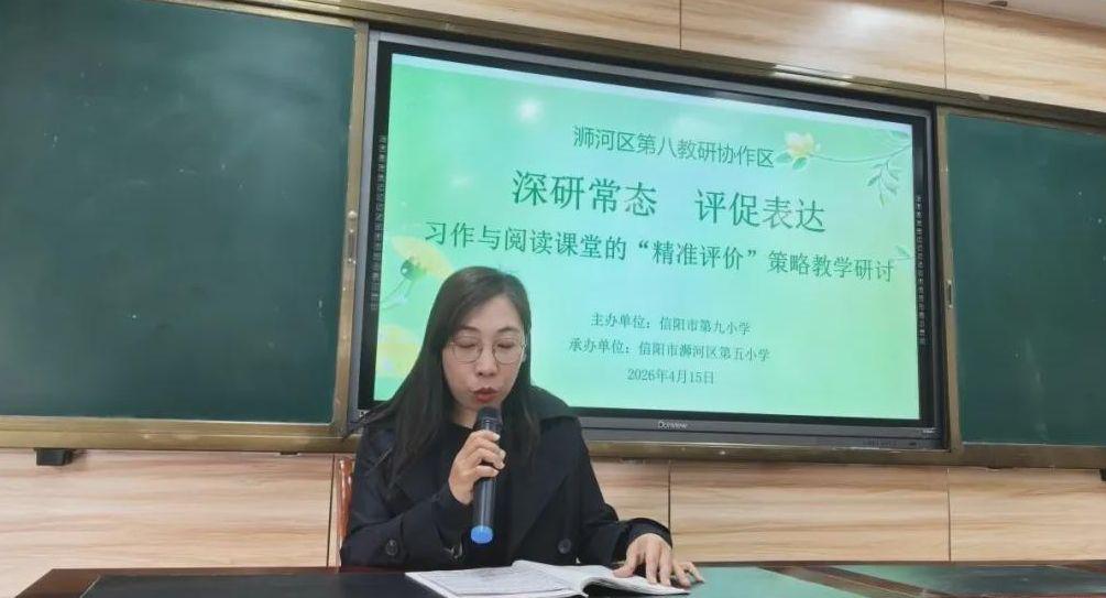 课后,两位作课教师首先进行了深刻的课后反思,分享了各自的教学设计与实施心得。随后,南湾教育办、李家寨教育办、浉河区第一小学、信阳市浉河区第五小学、信阳市第九小学的教师代表依次发言,围绕“精准评价”策略,从目标设定、评价工具、学生参与等角度展开热烈讨论。大家一致认为,两节课均以评价驱动学习,为习作与阅读教学提供了可借鉴的范式。
