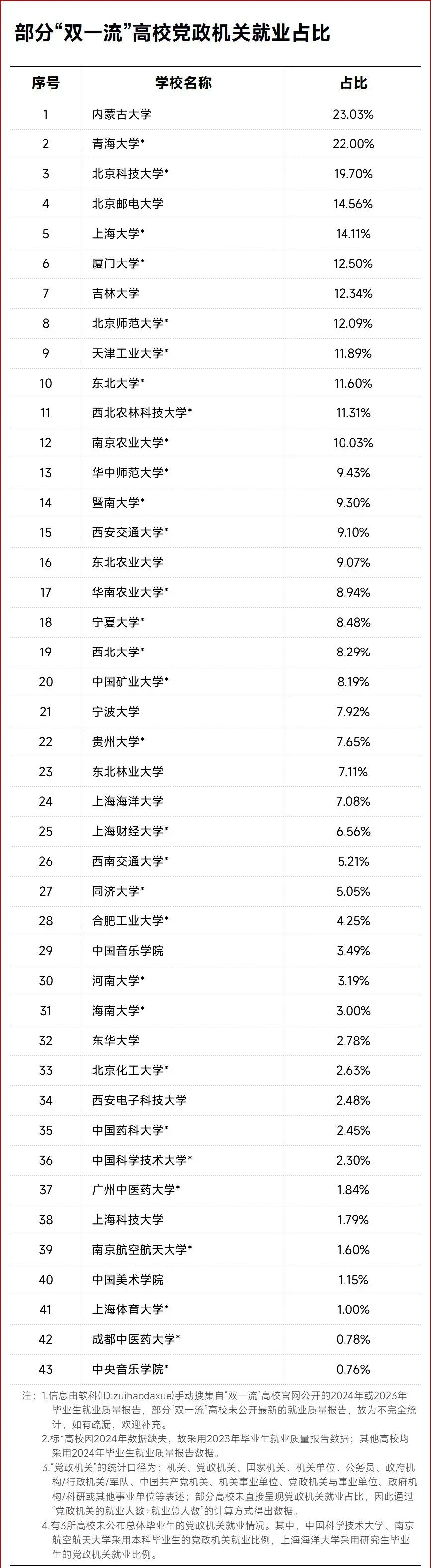 2022届毕业生中有95.35%进入党政机关。2024届96.47%的毕业生进入中央部委、省级机要部门,部分通过“内部专场考试”直接入编。