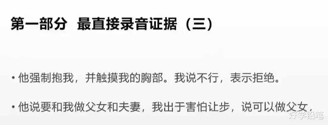 王迪的录音中清晰地显示了王贵元对她的强迫行为,包括要求亲吻、抱拥及触摸,甚至提出做父女和夫妻的要求。