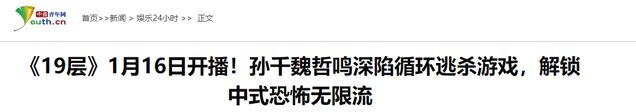 中国青年网:《19层》1月16日开播!孙千魏哲鸣深陷循环逃杀游戏,解锁中式恐怖无限流
