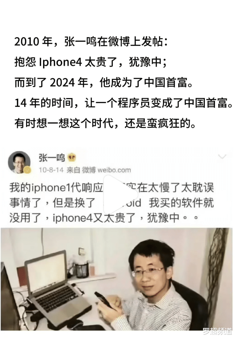 在那条广泛传播的微博中,14年前,张一鸣还在纠结要不要换“太贵”的iPhone 4。