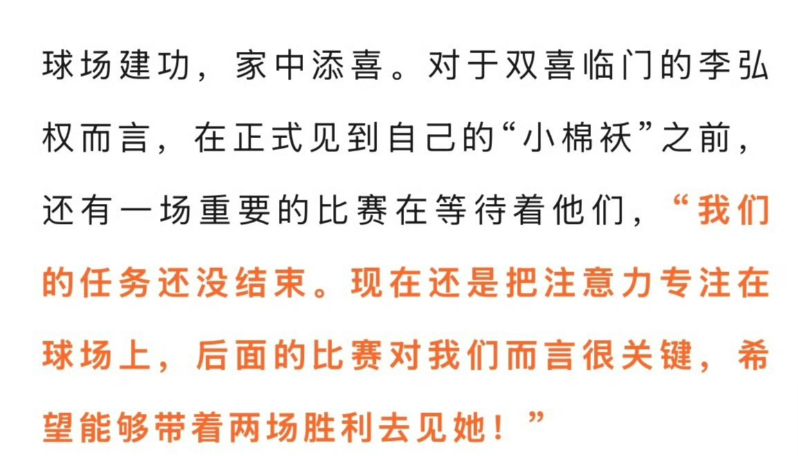 之前李弘权在采访中提到,希望带着两场胜利去见自己的女儿,现在他做到了,恭喜李弘权双喜临门。