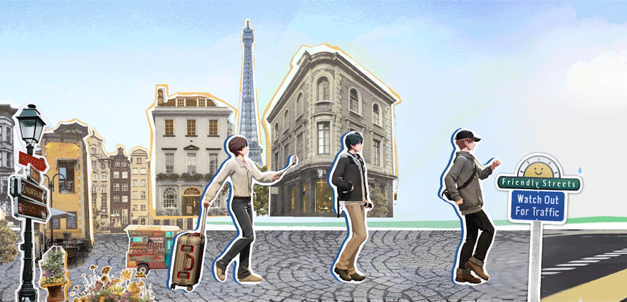 按常理来说,一个女性向游戏应该是以用户的主控视角展开,看到男主来和你谈恋爱。但《V Project》PV里的叙事,则是由李赫Lee、沈尼尔Near、周拾乐OCT三位练习生的团体视角展开,记述他们从说走就走,到踏上旅程、环游世界,再到日暮时分乘地铁回家的日常片段,并不是一个男女主之间的「恋爱故事」。