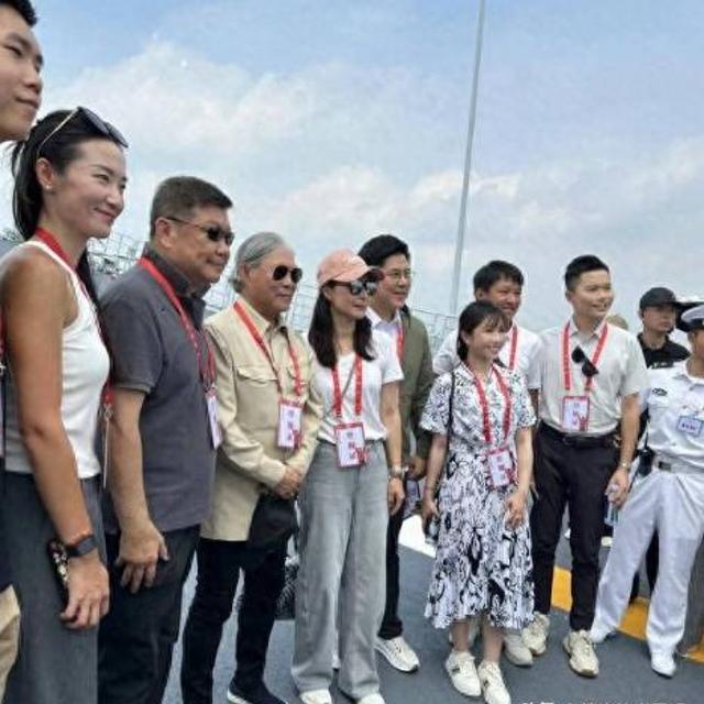 79岁的霍震霆也一起来了,老人家走路很精神,看着山东舰笑的牙不见眼。