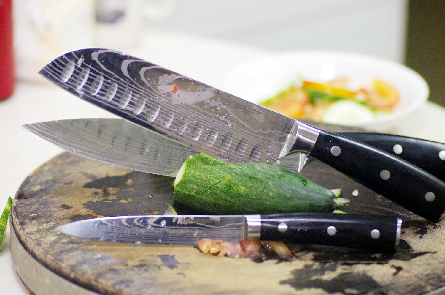 主厨刀在切割肉类时表现出色,刀刃锋利,切割顺畅,无需用力过猛便能轻松完成切割任务。三德刀在处理蔬菜等中小食材时同样游刃有余,刀刃的弧度与凹槽设计使得切割更加省力且不易粘连。水果刀在削皮和切割水果时更是得心应手,刀刃的锋利程度让人惊叹。