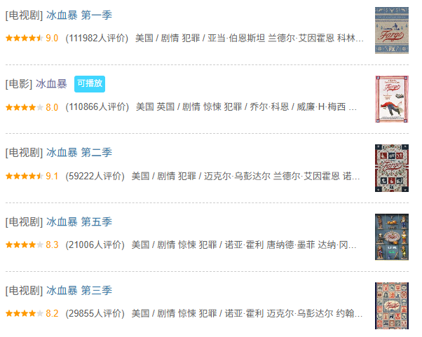 这部剧改编自科恩兄弟的同名电影,每一季都是独立的故事,但内核从未改变:当普通人被逼到绝境,一念之间就能坠入无底深渊。而且每季都是8+以上。