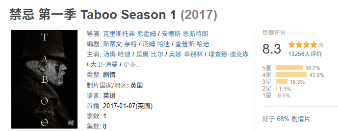 如果让我选一部最“邪气”的英剧,《禁忌》绝对第一时间上榜。