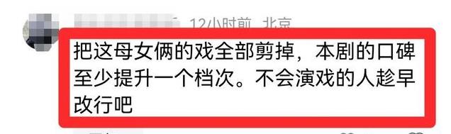 有网友吐槽道,“把这母女的戏全部删掉,本剧的口碑至少提升一个档次”。