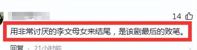 对于大结局,有网友吐槽道,“用非常讨厌的李文母女来结尾,是该剧最后的败笔。”