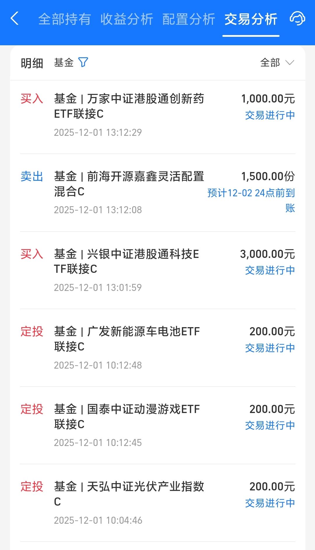 兄弟姐妹们下午好,今天我有基金操作,继续布局港股通科技,买点创新药,止盈一些人形机器人,定投是不变的。盘面上看,有色、算力,云计算涨幅居前,保险、创新药跌幅居前。