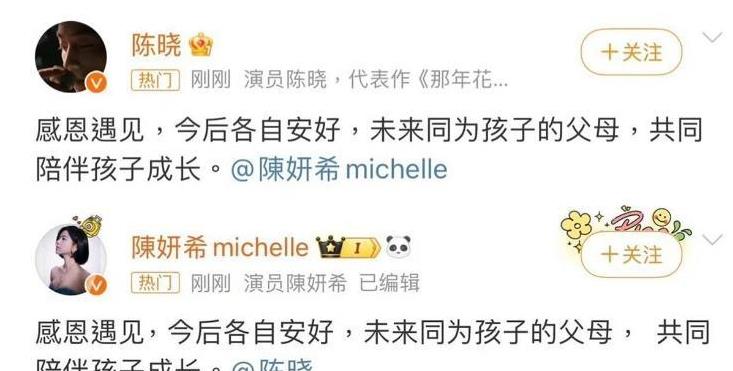 陈晓陈妍希离婚在2月18日,陈晓和陈妍希终于官宣了两人离婚的消息。