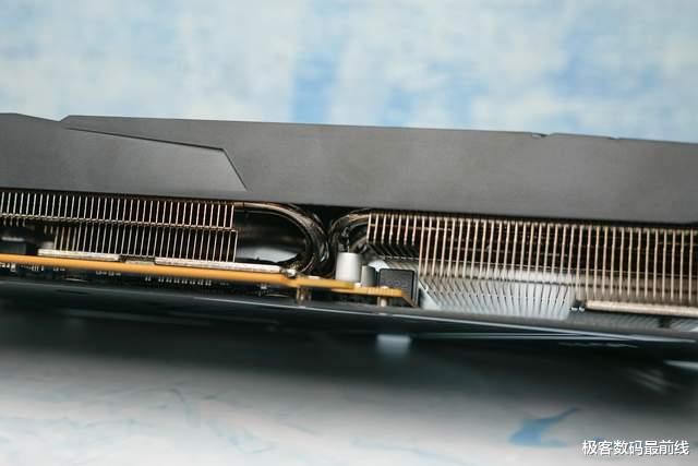 显卡的散热器是由两把9cm的幻雷风扇组成,它底下有大尺寸的热管散热片,散热能力可以很好地保证显卡的长时间满载运作。