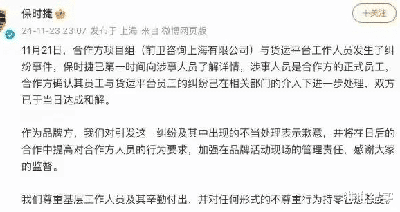 就在舆论几乎要“淹”了保时捷的时候,[保时捷深夜发文致歉,并表示已与司机达成和解]。声明中提到,涉事人员是合作方的员工,并非保时捷直接员工。保时捷承诺将在未来的合作中加强对合作方人员的行为管理和品牌活动现场的责任落实。
