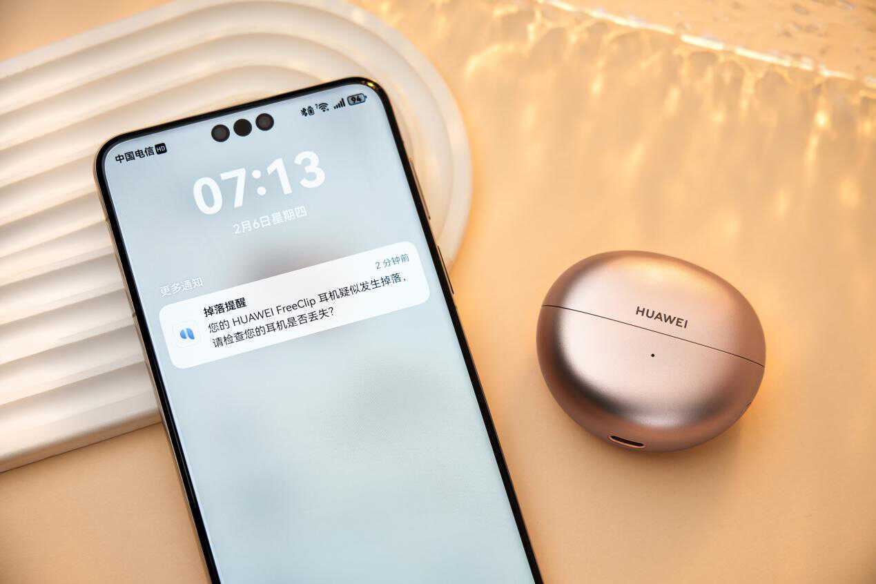 针对这一痛点,华为FreeClip耳夹耳机首发了掉落提醒功能。当一只耳机因外力滑落或碰撞时,另一只耳机会立即发出提示音,手机端也会弹出通知提醒,让你可以第一时间发现并找回耳机。这个功能特别适合忙碌的通勤人群或户外爱好者,不仅减少了耳机遗失的风险,还提升了日常使用的安心感。启用耳机的“查找”功能后,基于数以亿计华为设备组成的"查找"网络,即使耳机或充电盒不在身边亦可通过离线定位找到耳机,更支持近场查找、通知提醒-遗落提醒、掉落提醒等功能。