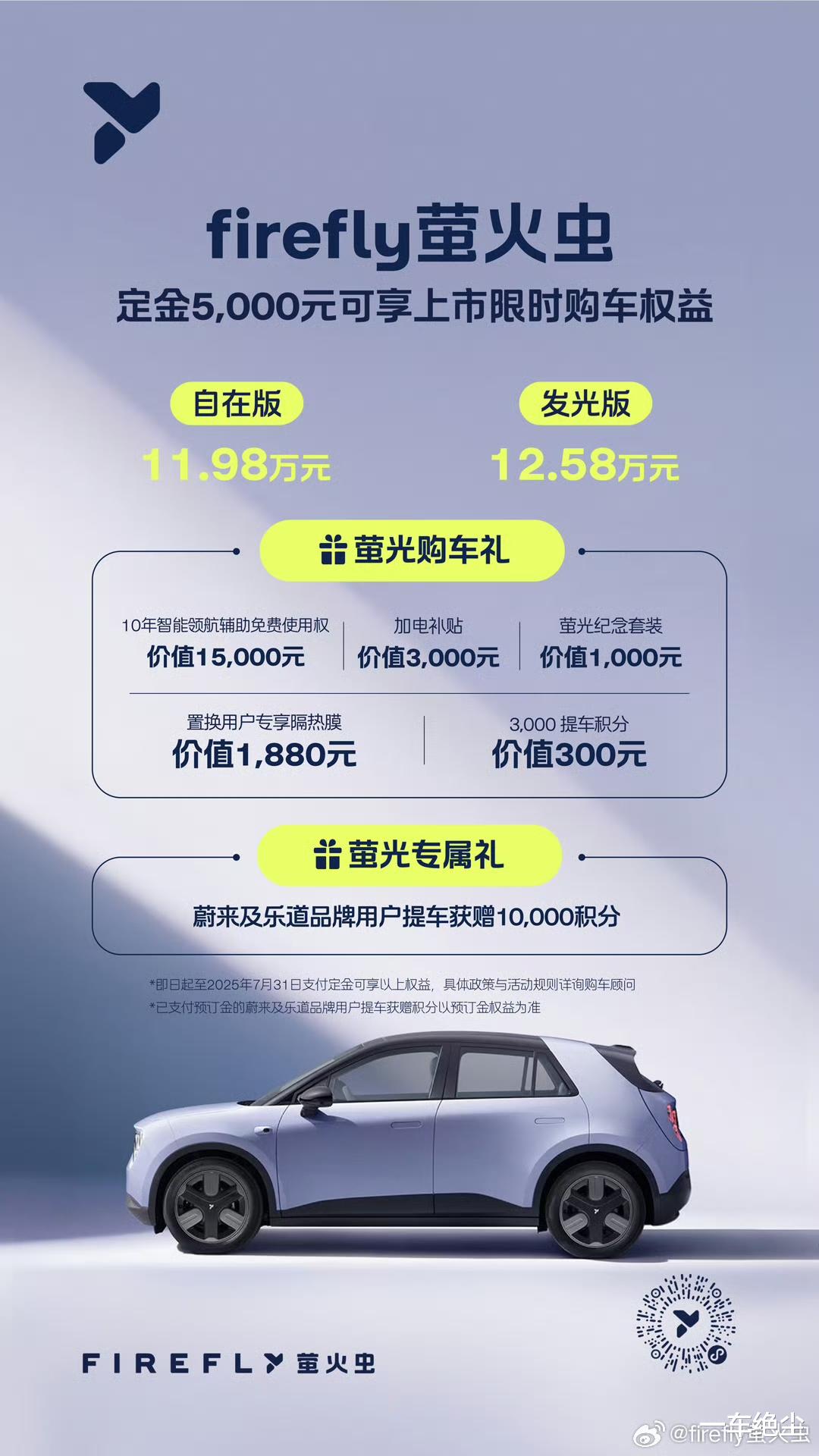 萤火虫作为蔚来第三品牌firefly推出的小型纯电车型,在4月19号晚上终于正式上市了。下面我们来了解一下这台精品小车。