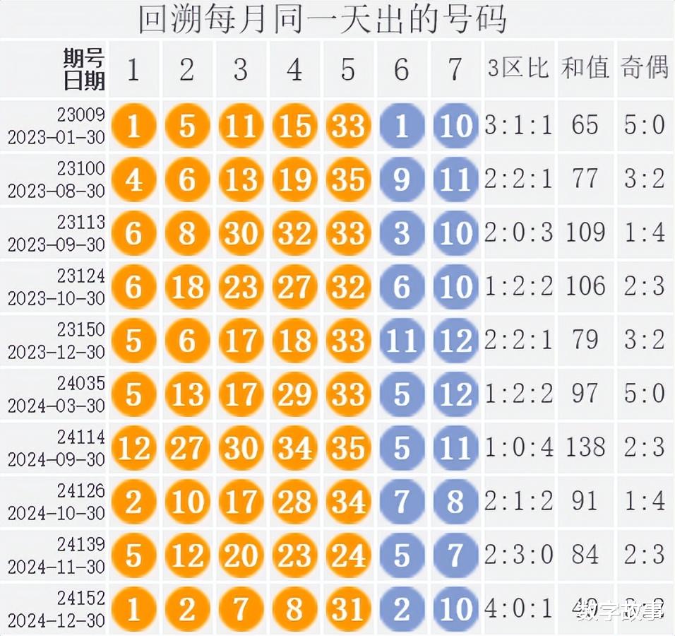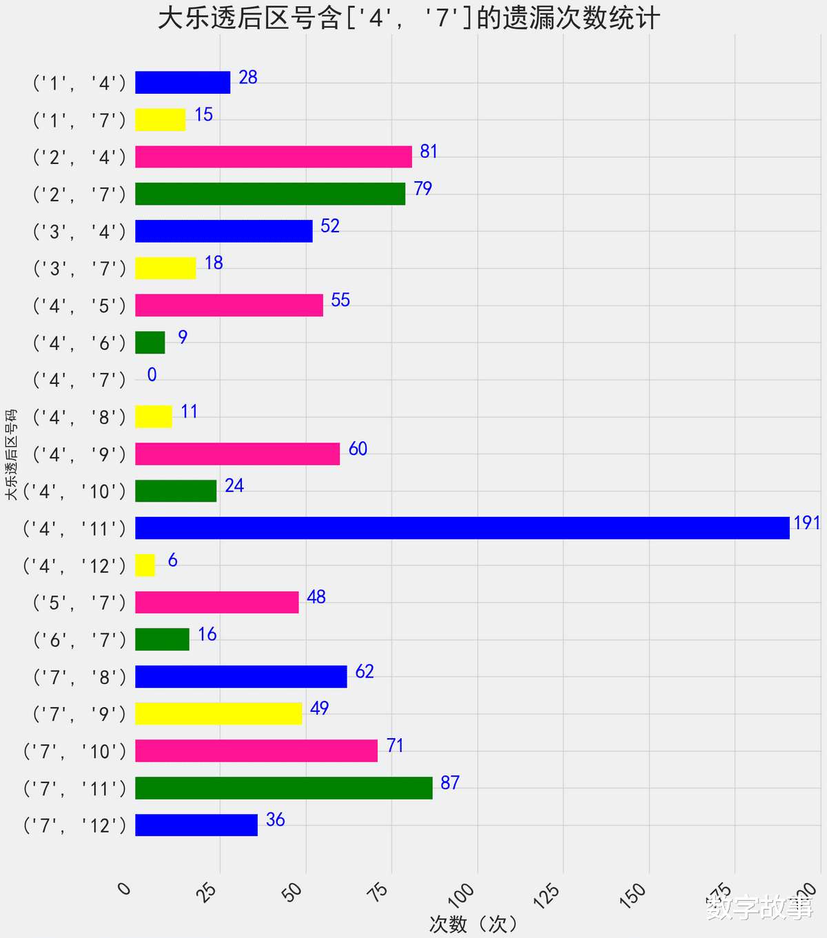 大乐透后区组合4-7近150期出了3次,这次中断了44期遗漏。