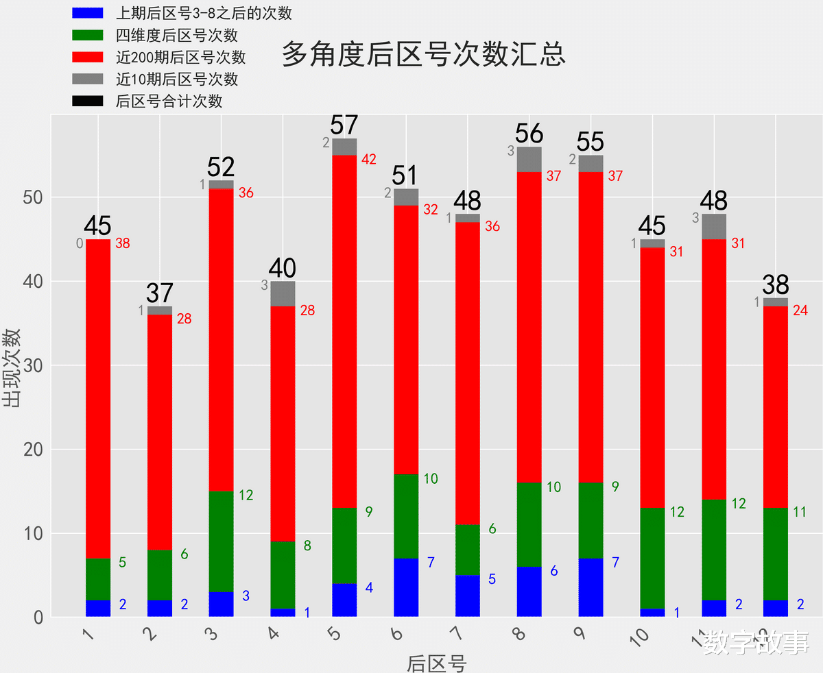统计近1500期后区号4-7之后, 各后区号的出现次数