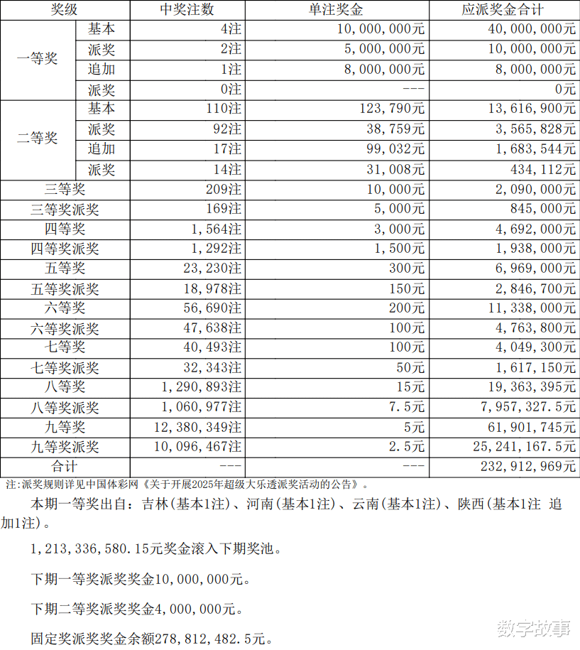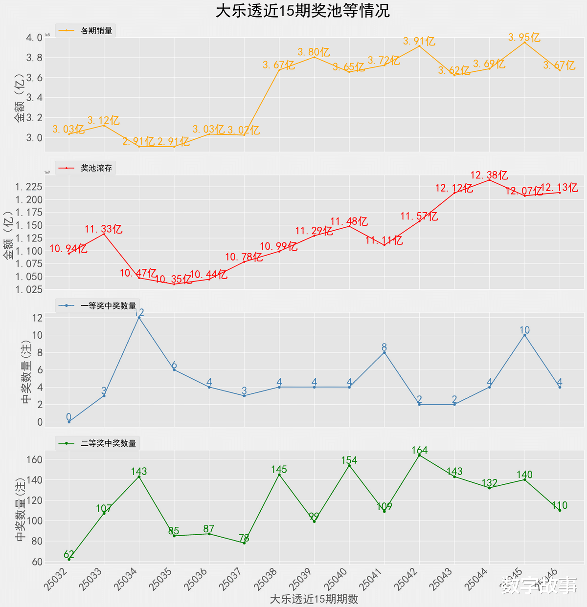 前区号组合历史上有1期四球相同,后区4-7中断44期遗漏;4注一等奖,奖池12.133亿。