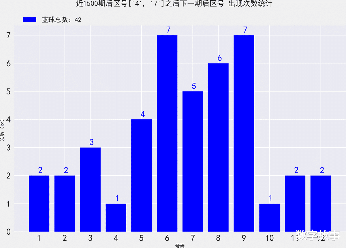 找出近1500期后区4-7号之后,下一期出现的所有后区号,统计其出现次数。