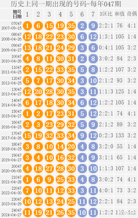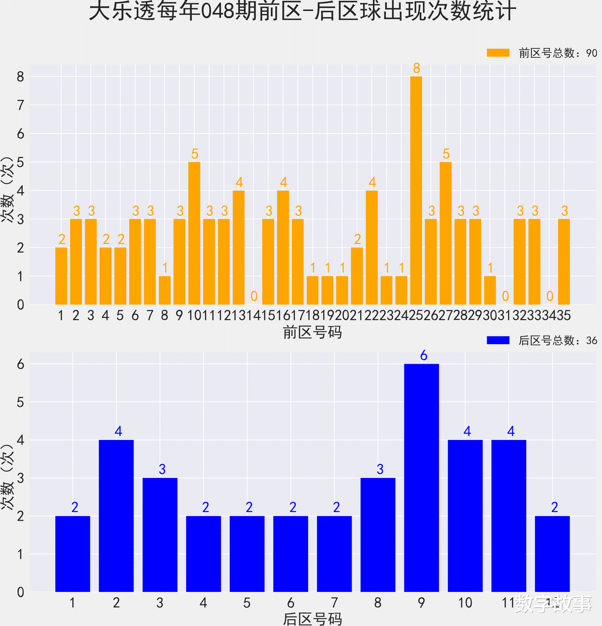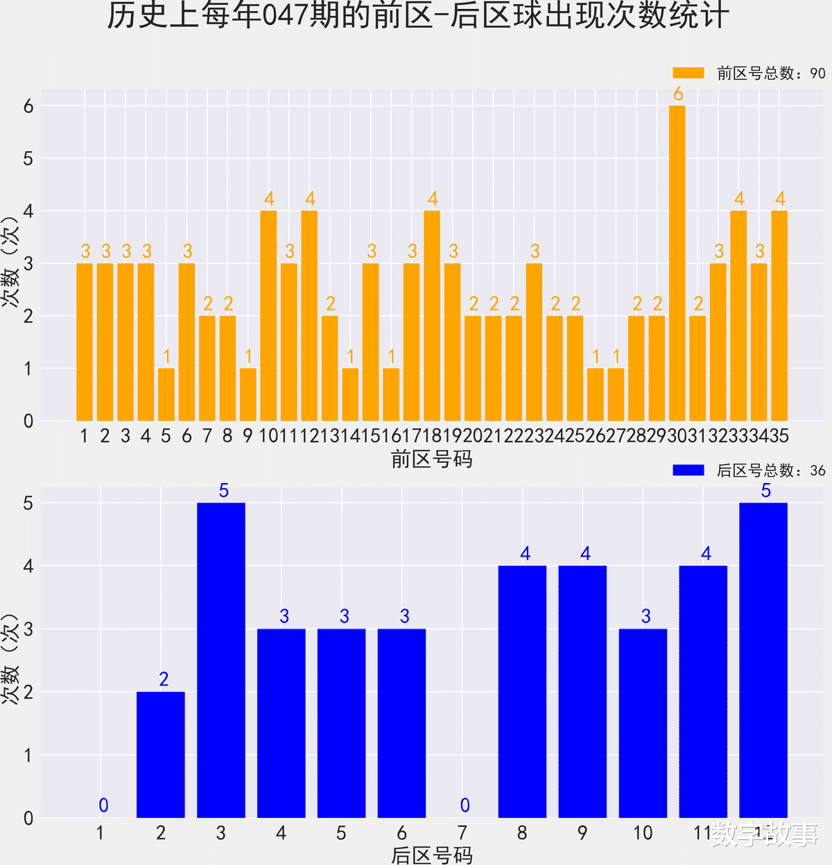 统计每年047期的样本数据: 90个前区号 36个后区号