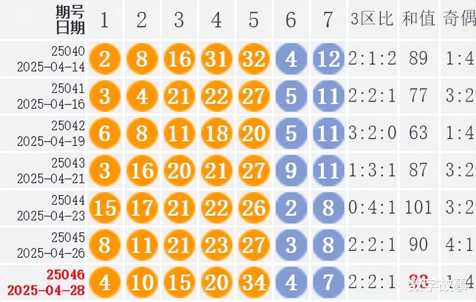 大乐透25047期四维走势图,前后区号统计及冷热号