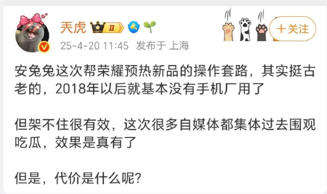 至于是否是炒作,目前安兔兔和荣耀官方均未做出任何的回应,但是这也让部分网友看到了目前荣耀的困境,新品的关注度确实不如往年。