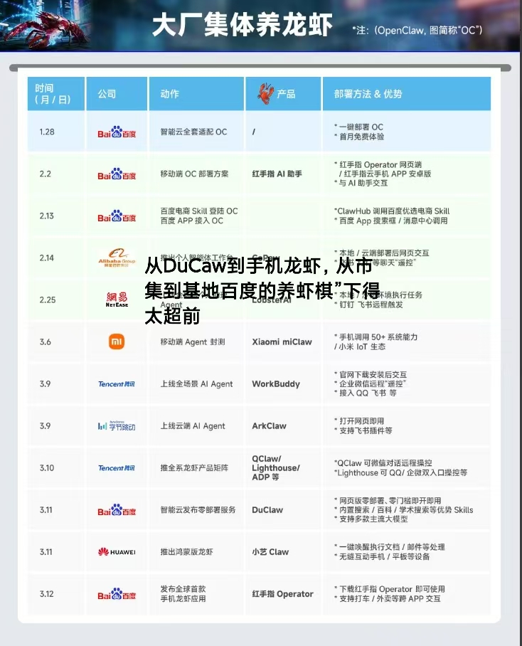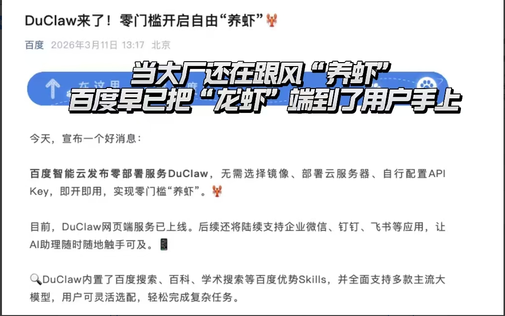 未来的AI竞争,是生态的竞争,更是全栈能力的竞争。百度用三个月的密集布局证明:在这个"养虾"的新战场上,准备最充分的人,才能吃到最肥美的那只龙虾。
