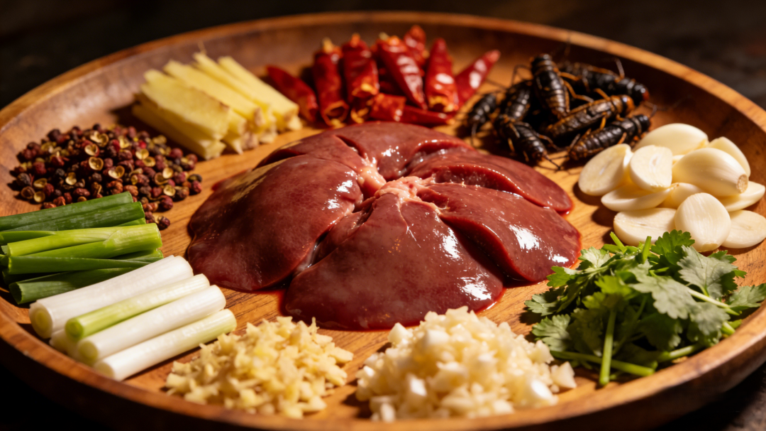 要制作出一盘地道的彝家剁肝生,食材的新鲜度与独特性是决定成败的关键。主料需选取当天宰杀、极为新鲜的猪肝一副,其色泽应红润有光泽,质地紧实而富有弹性。辅料的准备同样考究:高度白酒是去腥提鲜、并赋予其独特风味的核心,同时具有杀菌作用;五香辣椒粉与优质花椒带来层次丰富的香麻辛辣;辅以现捣的姜末、蒜末、葱白与香菜,以激发复合香气。特别值得一提的是,地道的做法中还会加入一种独特的食材——酸蚂蚁,其天然的酸爽能为肝生注入灵魂,若无法获取,也可用其他酸味佐料替代。