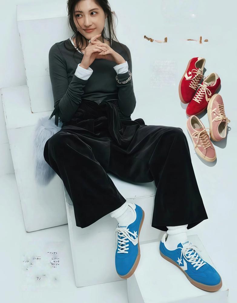颜色上浅色鞋更百搭。白色米色灰色都不错,和裤子衔接自然。深色鞋容易把脚部变成色块,腿的线条就断了。
