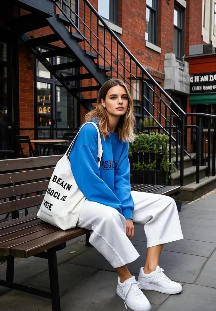 卫衣就得这么配。卫衣容易显懒散,下面收个九分裤,脚踝露出来,整套就有精神了。周末出门这么穿,舒服又好看。