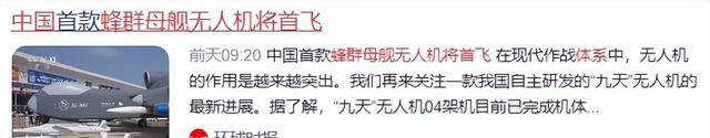 1、中国首款蜂群母舰无人机将首飞——环球时报