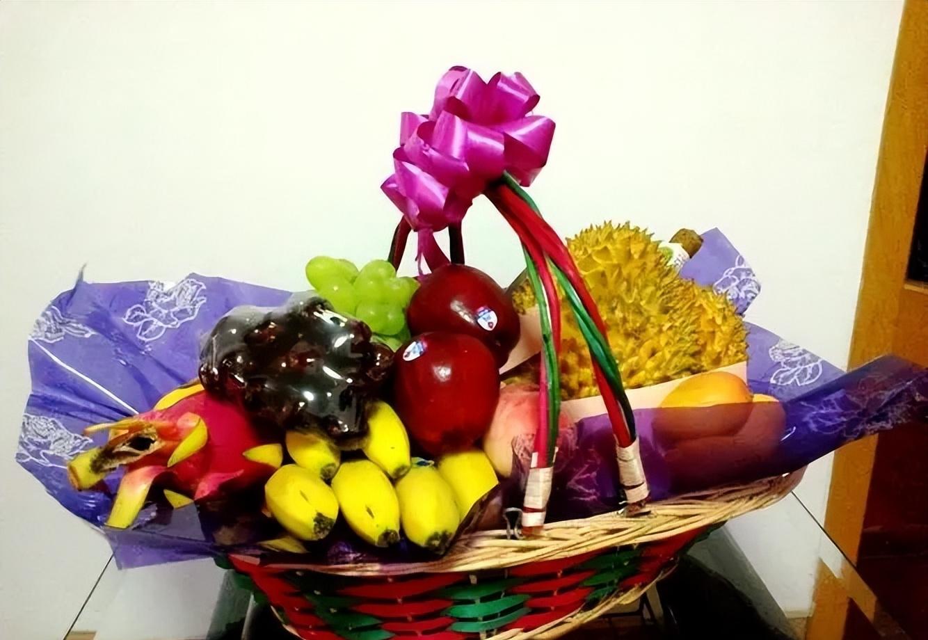 由于时间匆忙,她没有提前准备礼物,只能在当地买了些水果花篮。