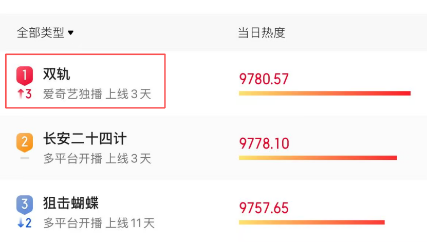 这不,眼下奇异果又推出一部新剧《双轨》,开播热度直接破9700,登上全网热度第一,冲劲太猛了。