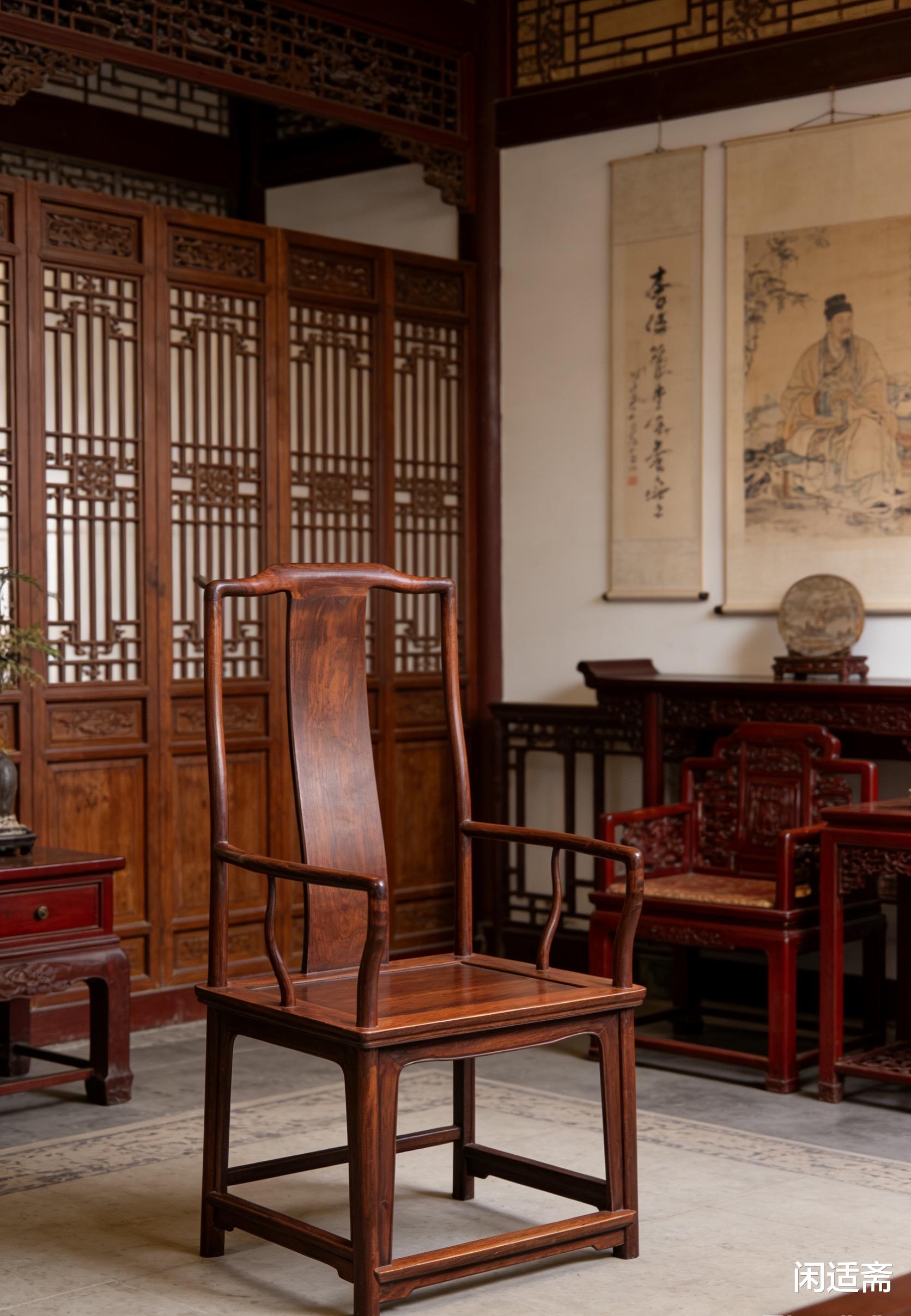 整椅将木材的天然之美、坐具的实用之需与文人含蓄谦和的精神追求融为一体,是明式书房家具中极具代表性的经典之作,不仅是可供日常使用的雅致坐具,更兼具极高的收藏价值与深厚的人文意蕴,值得世代珍藏与传承。