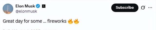 令人意外的是,在法案于国会通过后的前几个小时,马斯克出奇地保持沉默。但在7月4日,美国独立日这天,他终于打破沉默,用一句意味深长的话掀起政治风暴:“今天是燃放烟花的好日子……”并配上两个火焰表情。