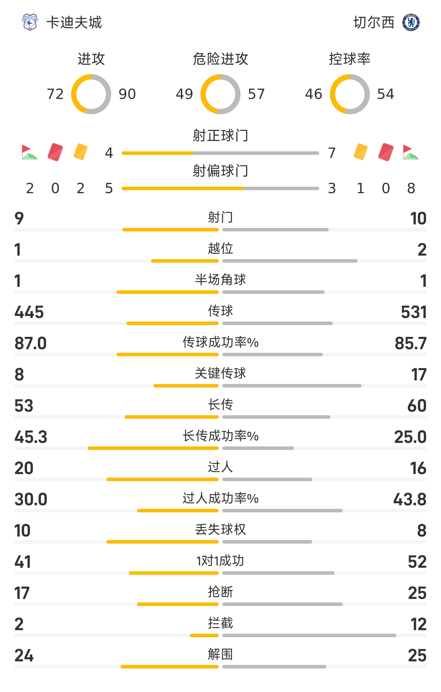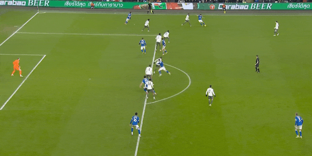 第57分钟,切尔西率先打破僵局。卡迪夫城后卫迪伦·劳勒后场传球失误,被切尔西球员法昆多·博纳诺特机敏抢断。博纳诺特得球后迅速突入禁区,冷静地将球横传给中路跟进的加纳乔,后者轻松推射破门,切尔西1-0领先。