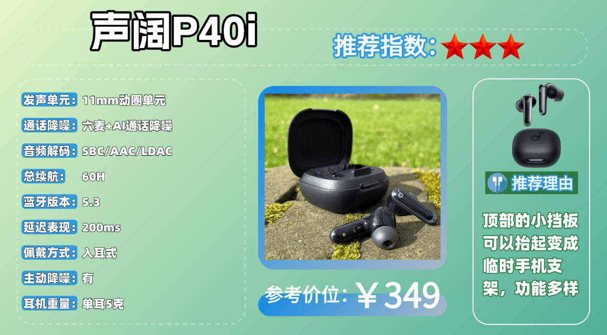 综合主流机型3、声 阔P 40i蓝牙耳机
