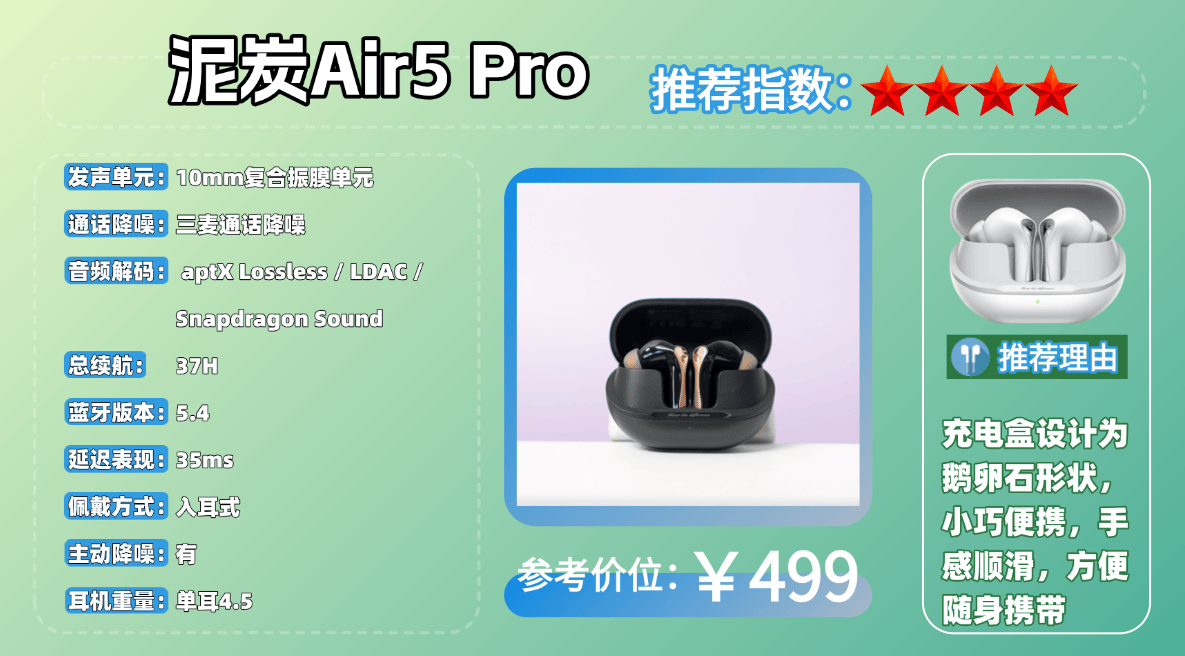 综合主流机型2、泥 炭A ir5 Pro蓝牙耳机