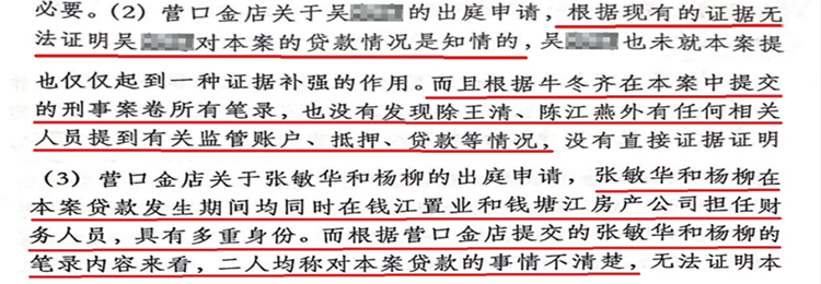 关于资金被牛某齐及营口金店、王某、陈某燕使用,且三方可能存在恶意串通事实认定,判决书部分截图如下: